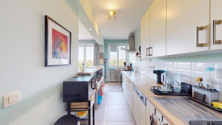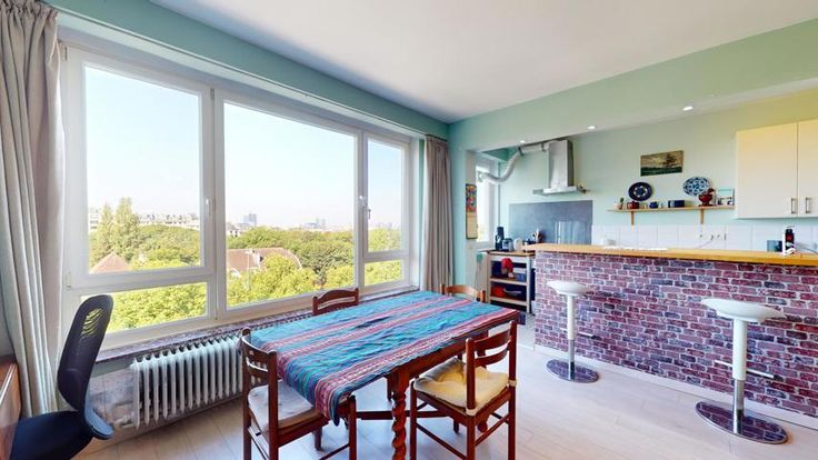 Proche du Parc Josaphat, à proximité des moyens de transport et des commerces, bel appartement au 6ième et dernier étage d'un immeuble bien tenu. Cet appartement se compose d'un vaste hall d'entrée, d'un living/salle-à-manger de 33 m², d'une cuisine US équipée, de 2 chambres-à-coucher (18 et 12 m²) avec accès à un balcon de 7 m², d'une salle de douche, d'un buanderie, et d'une toilette séparée. Cave. Très lumineux (living et cuisine orientés "Sud-ouest"). Electricité en conformité. Vues verdoyantes et dégagées.