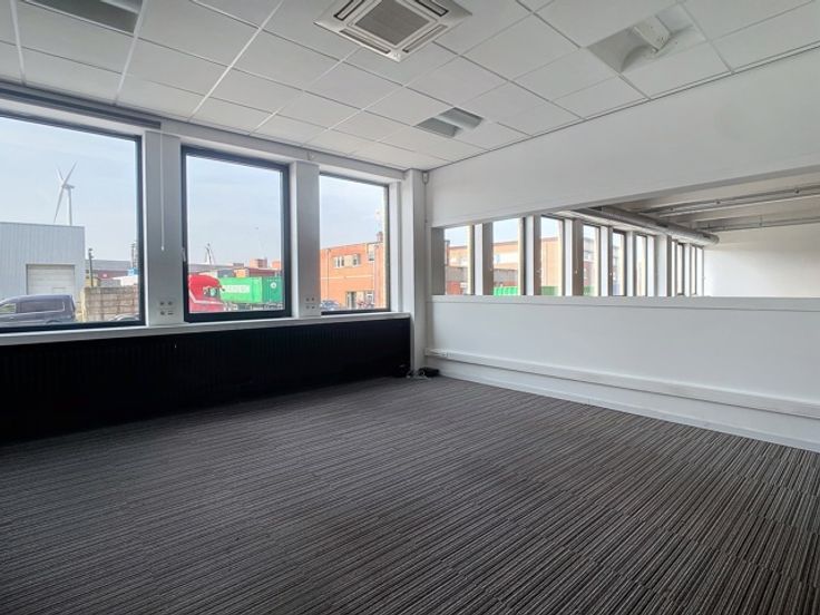 Dit ruime kantoor van 600m² bevindt zich op de gelijkvloerse verdieping van een gebouw gelegen langs de Noorderlaan en Haïfastraat. Het kantoor biedt zowel open ruimtes als kleinere afgesloten ruimtes. De aanwezigheid van ramen langs de gehele lengte van het gebouw zorgt voor voldoende natuurlijk licht. De locatie is bijzonder gunstig, in de nabijheid van de haven van Antwerpen, de op- en afritten naar de A12 en E19, en is goed bereikbaar met het openbaar vervoer, waaronder het nabijgelegen treinstation Noorderdokken. Er zijn buitenparkeerplaatsen beschikbaar aan €500/plaats/jaar.