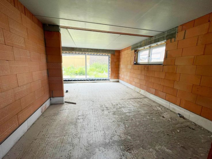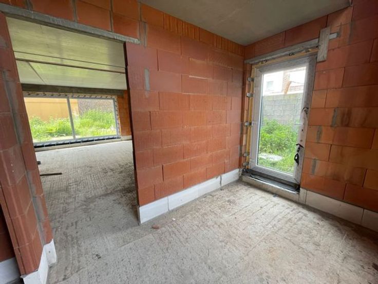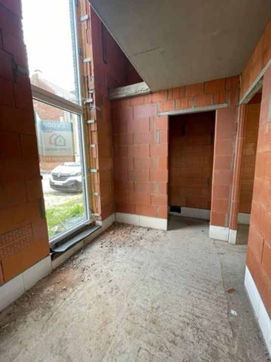 Op een goede locatie in Denderleeuw bevindt zich deze halfopen bebouwing (nieuwbouwwoning) op een aangenaam perceel. Deze woning wordt in zijn huidige staat (casco - water en winddicht) verkocht. Deze omvat een ruime inkomhal met een apart toilet. In de inkomhal is er de ruimte voorzien om een trap te plaatsen naar de eerste verdieping. Verder omvat het gelijkvloers een ruime eet- en leefruimte met open keuken. Door het grote schuifraam en de ramen aan de zijgvel is er enorm veel lichtinval. Aansluitend aan de keuken is er nog de bergruimte en inpandige garage aanwezig. Op de eerste verdieping zijn er drie ruime slaapkamers aanwezig, alsook een badkamer die voldoende groot is voor het plaatsen van: bad, douche, lavabo en toilet. De nachthal is opgesteld zodat er ruimte is voor het plaatsen van een vaste trap naar de zolderverdieping.