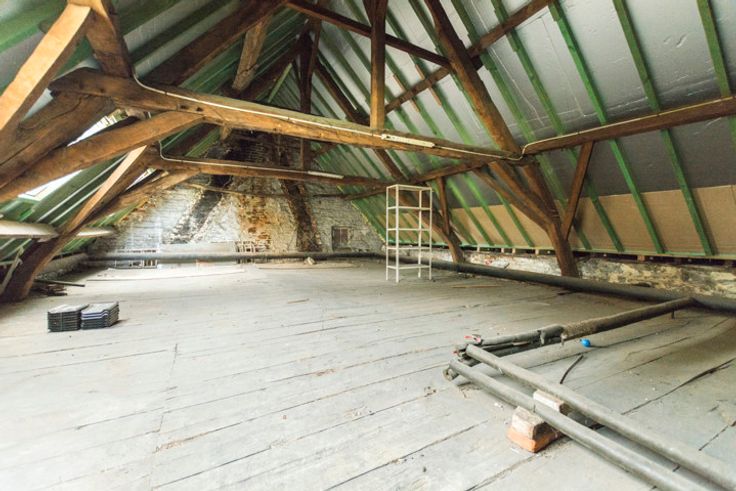 De zolder kan dienstig zijn als bergruimte.