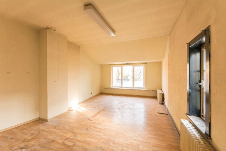 De verdieping herbergt een ruime woonst, bestaande uit een overloop, living, bureel, 4 ruime kamers en een badkamer.