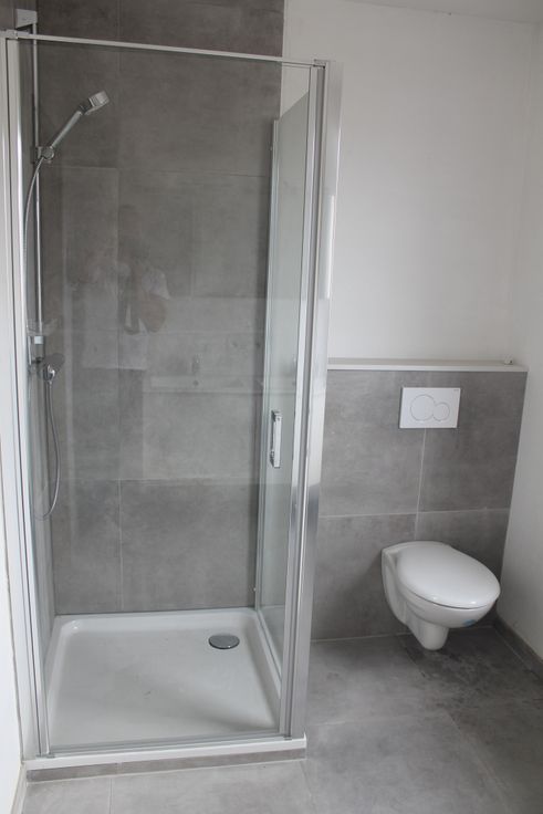 Badkamer: De badkamer is uitgerust met een moderne douche, een lavabo en een toilet.