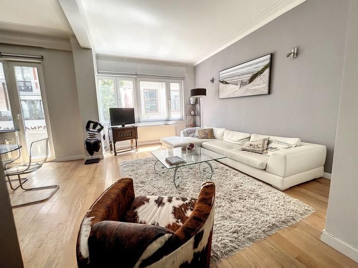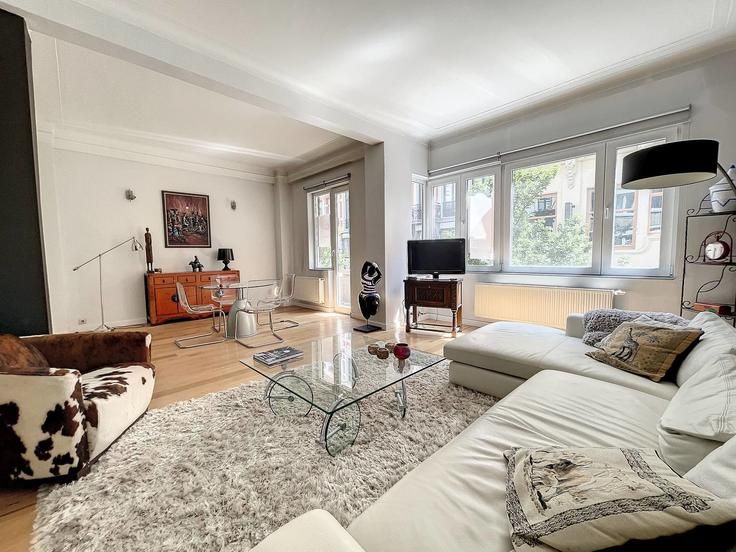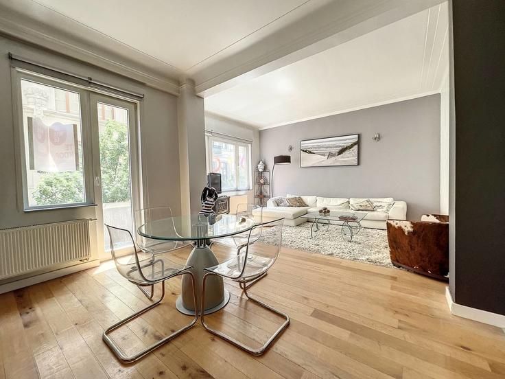 In de bruisende buurt van de Beurs en de Sint-Gorikshallen, charmant appartement te koop van ± 84 m² op de eerste verdieping van een charmant gebouw. Het appartement biedt:- ruime woonkamer met parket,- open volledig ingerichte keuken,- ruime slaapkamer,- open douchekamer,- dressingruimte,- apart toilet,- kosten: ± 100 Euro/maand voor gemene delen,- gemeenschappelijk dakterras met adembenemende vergezichten over Brussel,- EPC: D+Top locatie in Dansaertwijk nabij de Beurs en de voetgangerszone. Voor liefhebbers van het centrum!