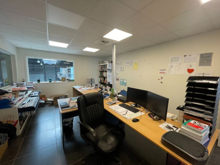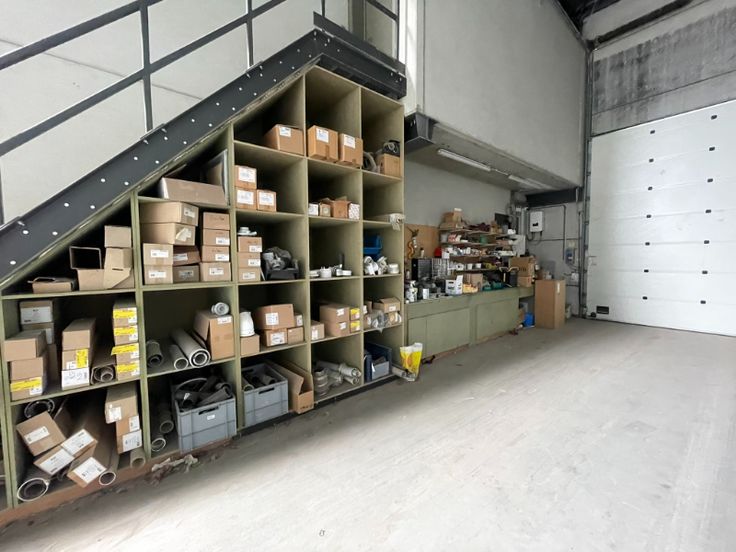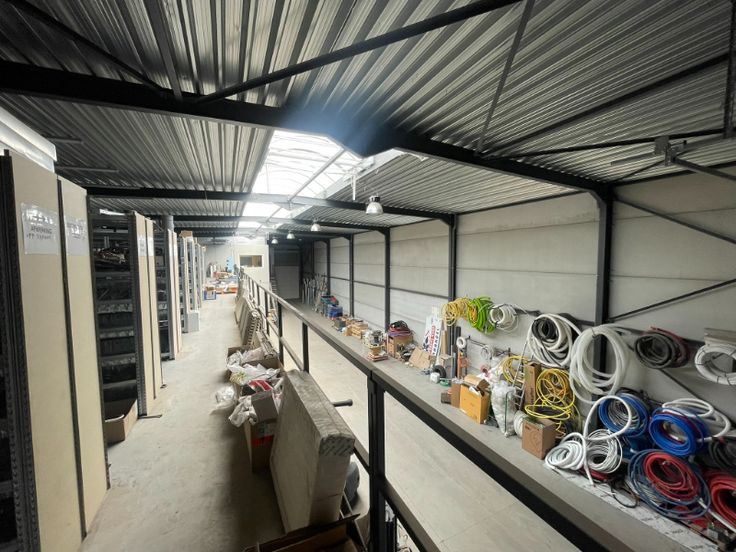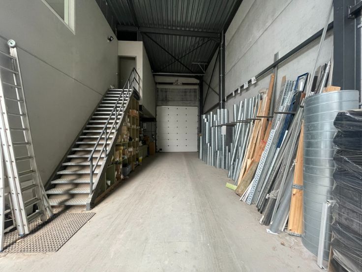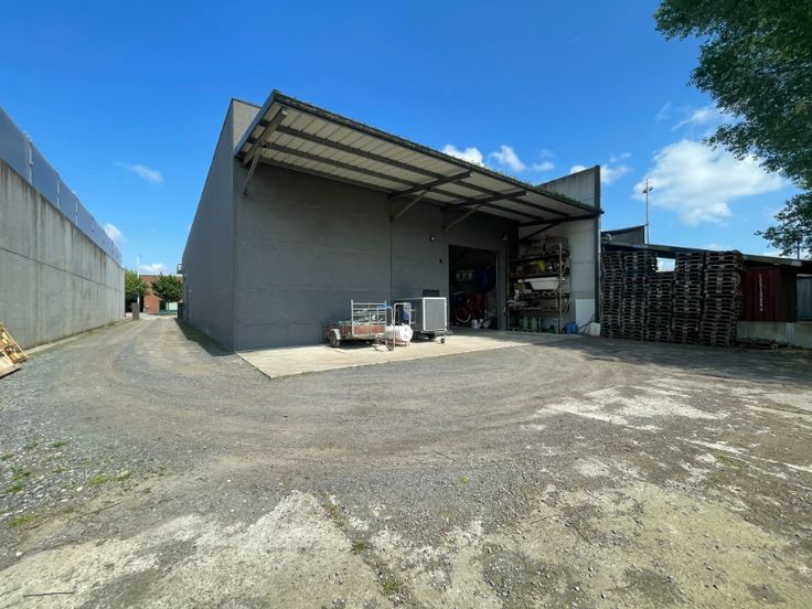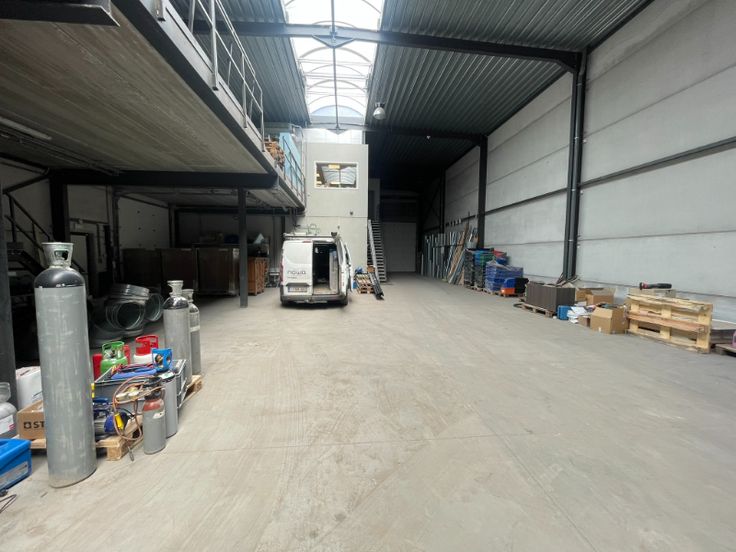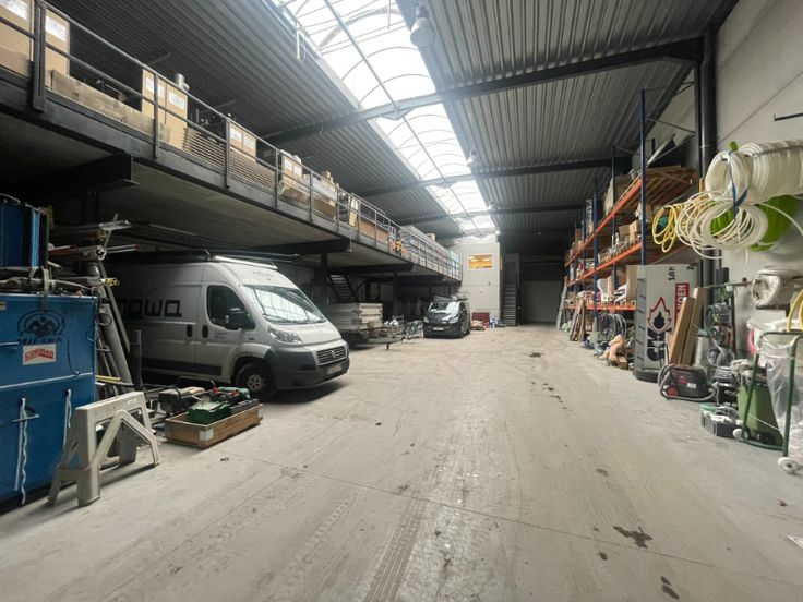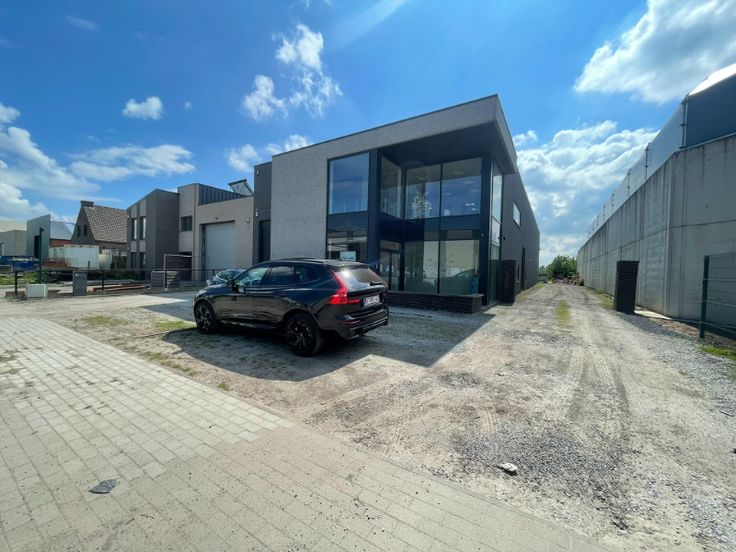 Het gebouw bestaat uit een staalstructuur met geïsoleerde silexbetonpanelen. Het magazijn is functioneel opgebouwd met 3 automatische sectionale poorten, polybetonvloer met enkele afvoeren, een geïsoleerd steeldeck met een centrale lichtstraat en rookluik. Aan de achterzijde van het magazijn is er een luifel geplaatst voor buitenstockage. Het kantoor is opgebouwd met een glazen gevel, aluminium schrijnwerk (draai- /kipramen), een mooi inkomhal die kan dienen als showroom, kitchenette op het gelijkvloers en op de eerste verdieping, verlaagd plafond met LED armaturen, keramische tegelvloer. De technieken: vloerverwarming op gas, airco op eerste verdiep, ventilatie, oplaadpunt voorzien voor auto's.