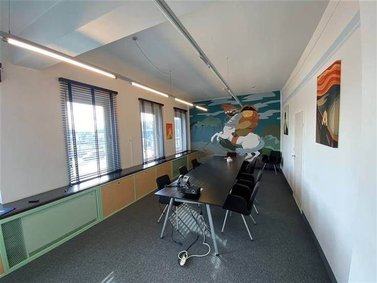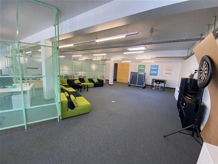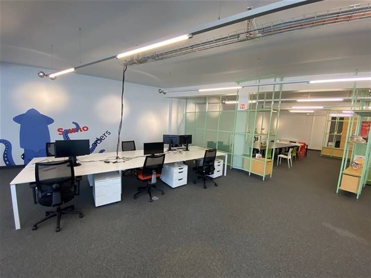 De ruimte is deels open en deels ingedeeld in 11 afzonderlijke bureauruimtes d.m.v verwijderbare scheidingswanden.