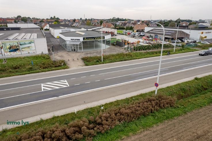 Magazijn/loods met showroom van ± 1700m² op een perceel van ± 3.755m² met bijhorende woning. Uiterst commercieel gelegen langs de N36/Rijksweg tussen Roeselare en Harelbeke.