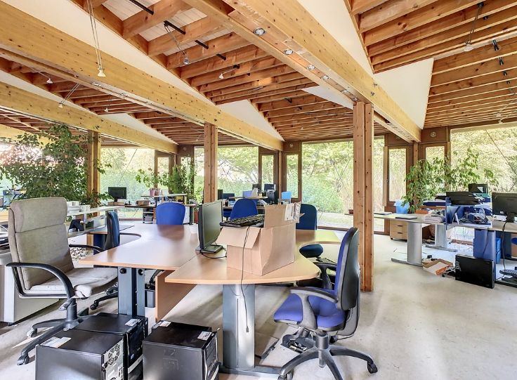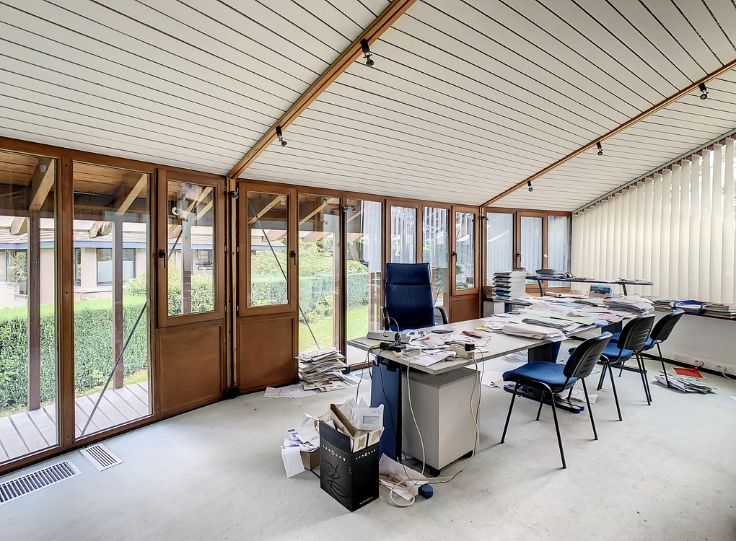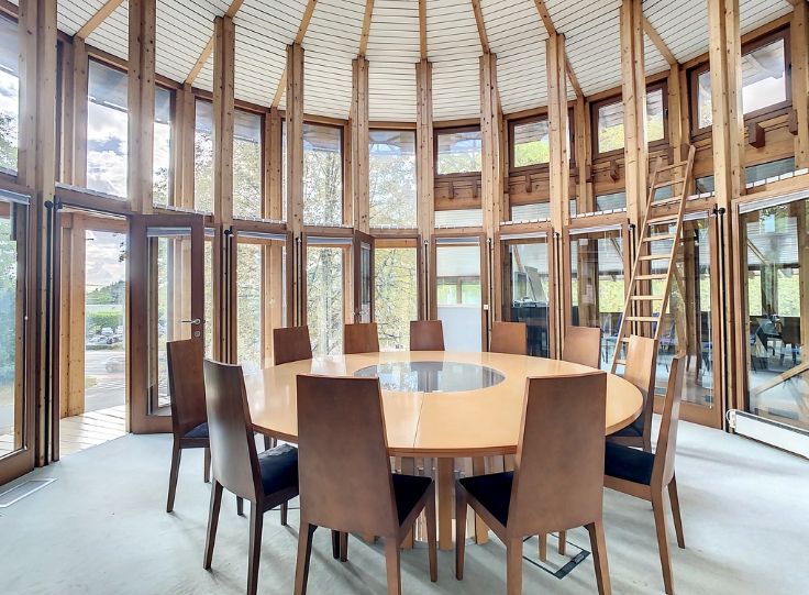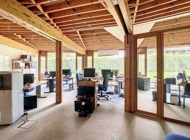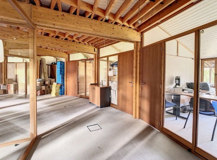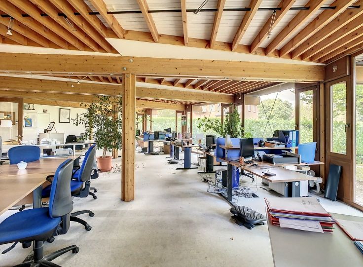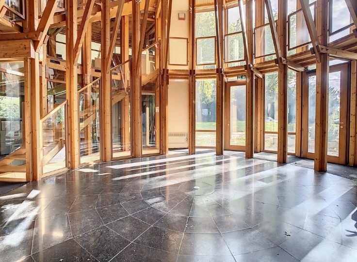 Ce superbe immeuble de l'architecte renommé Philippe Samyn construit en 1982, vous offre ±900m² utiles sur un terrain de ±19a47ca. Sa structure en bois apporte chaleur et légèreté à l'ensemble qui se caractérise par la verticalité des rythmes.