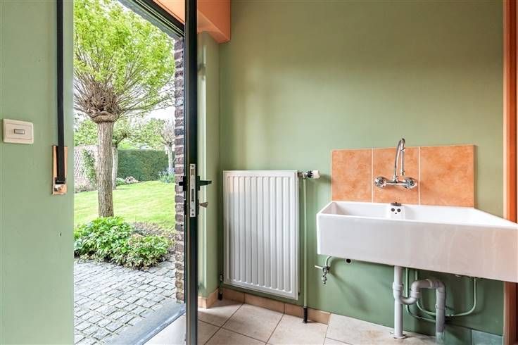 Chaufferie/buanderie, WC. Cave au sous-sol sous le hall d’entrée. .