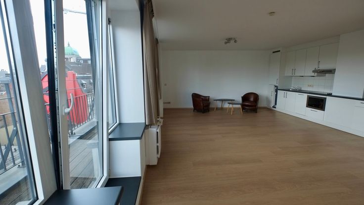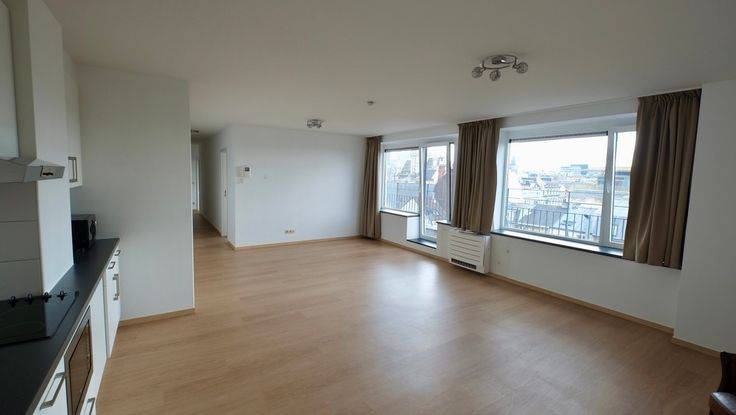 Nieuw appartement van 90 M2 met reuze groot terras op de zesde verdieping van een gebouw met extreem centrale ligging. Airco. 2 slaapkamers. Parking mogelijk in het gebouw.