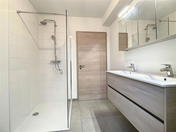 LOYER : 820€ + CHARGES : 50€. Appartement neuf, situé à proximité immédiate des commerces, des transports en commun, du centre de Florennes. Il se compose d'un hall d'entrée, d'un WC indépendant, d'un espace rangement/buanderie, d'une salle de douches (avec double vasque et rangements), d'un vaste séjour ouvert sur la cuisine équipée (four, hotte, taques de cuisson, évier et lave-vaisselle) et de 2 chambres. Il est muni d’une terrasse et de 2 emplacements de parking (1 intérieur n°12 et 1 extérieur n°19). Il est agrémenté d'un vidéophone, d'un accès PMR, d'un ascenseur et d'un local poubelles au sous-sol. La résidence bénéficie d'un PEB "B" grâce à une isolation acoustique et thermique, aux châssis PVC double vitrage, au chauffage via pompe à chaleur réversible permettant de chauffer/refroidir (airco). Garantie locative de 2 mois de loyer. Disponible pour le 1er février 2024. Ces informations sont délivrées à titre informatif et non contractuel.