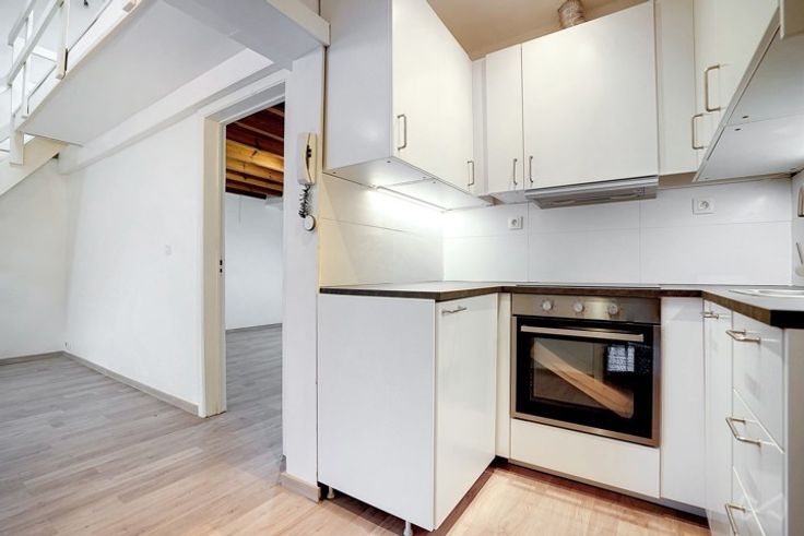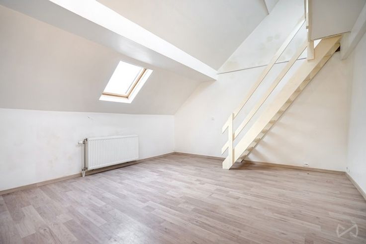 Op de 3e verdieping: half uitgeruste keuken, woonkamer/eetkamer met mezzanine, slaapkamer van ongeveer 17m2, doucheruimte en toilet.