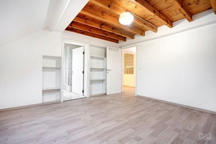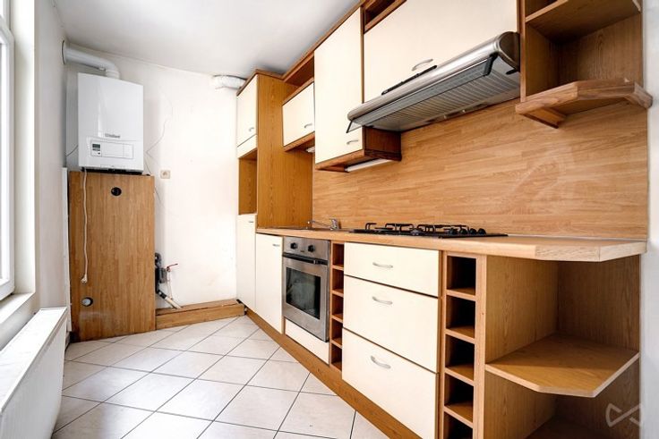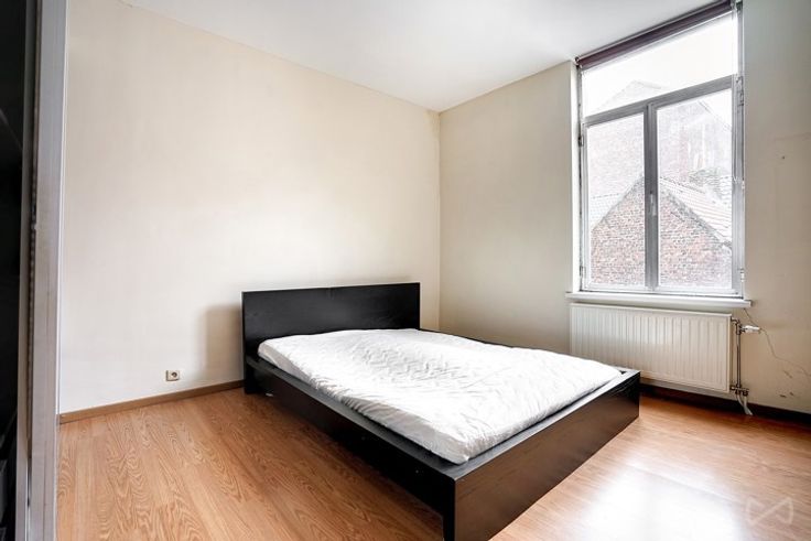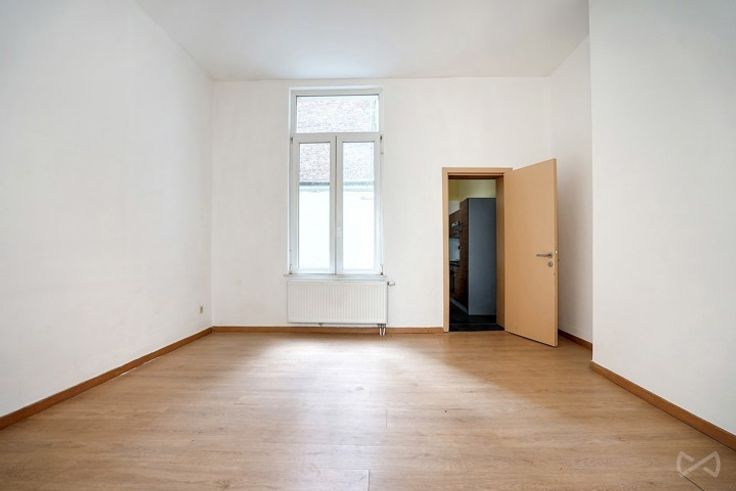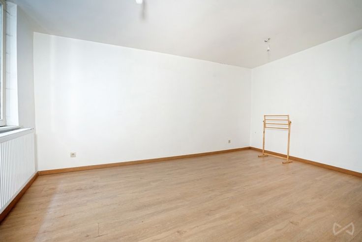 Op de 1e verdieping: een woning met woonkamer/eetkamer, half uitgeruste keuken, slaapkamer van ongeveer 17m2, badkamer en toilet.