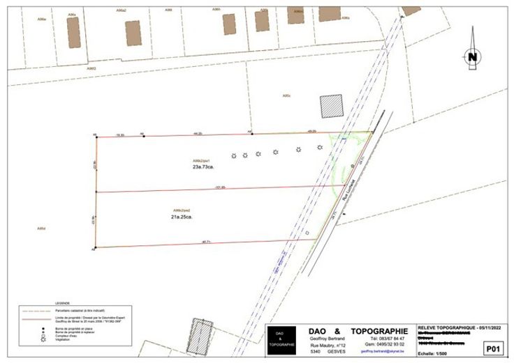 La clé des maisons vous propose ce magnifique terrain à bâtir de 2373 m2 ( Pie 1) avec une superbe vue sur les campagnes. Situé à Evrehailles, dans une rue très calme. Vous serez séduit par sa superficie et sa localisation. Cerise sur le gâteau, à la campagne mais proche de toutes les commodités, ce terrain est libre de constructeur et n'est pas situé dans un lotissement. Opportunité à découvrir sans tarder. Ce terrain fait partie d'une ensemble de +- 4500m2 (projet de découpe dans les photos). Possibilité d'acquérir les lot Pie 1 et Pie 2 ensemble parce qu'ils ne sont pas encore bornés. La rue est équipée en eau, électricité. Prix: 149 000 €. Contact Anne: 0496/ 12 64 40. Tous les documents sont téléchargeables sur : https://www.lacledesmaisons.be/fr/bien/a-vendre/terrain/5530-yvoir-(evrehailles)/6056151