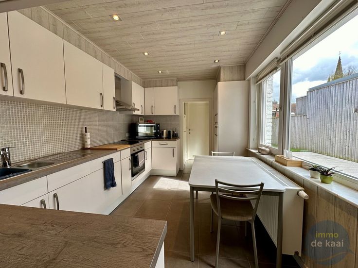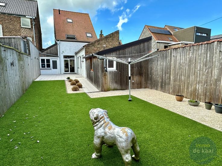 IN OPTIE - Gezellige en centraal gelegen stadswoning met 3 slaapkamers en ruime garage. U kan hier genieten van een ruime koer met veel privacy en een mooi aangelegde stadstuin in kunstgras. Handige ruime garage naast de woning van 8meter diep met toegang tot de tuin.