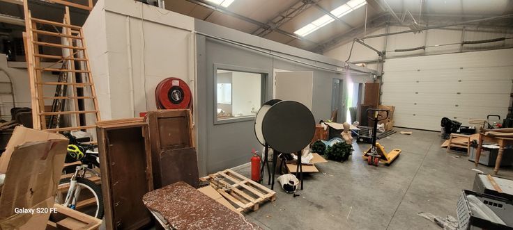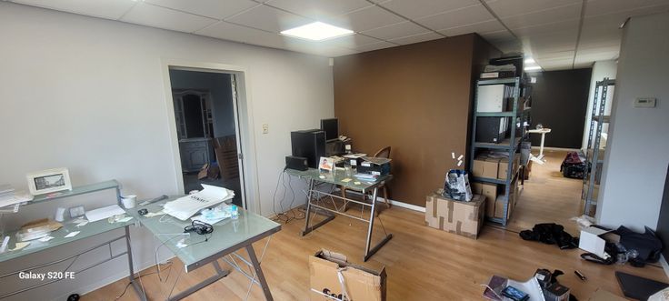 Bardage en panneaux sandwiches laissés apparents. Présence d’une dalle en béton lissé. Volet sectionnel électrique en façade avant. Une porte d’accès en façade et une par l’arrière. Système d’éclairage de l’entrepôt par TLLes bureaux L’entrepôt comporte deux grands bureaux et un WC. Plafonds en métal Stud. Présence de parquet au sol. Revêtement des murs en fibre de verre peinte.