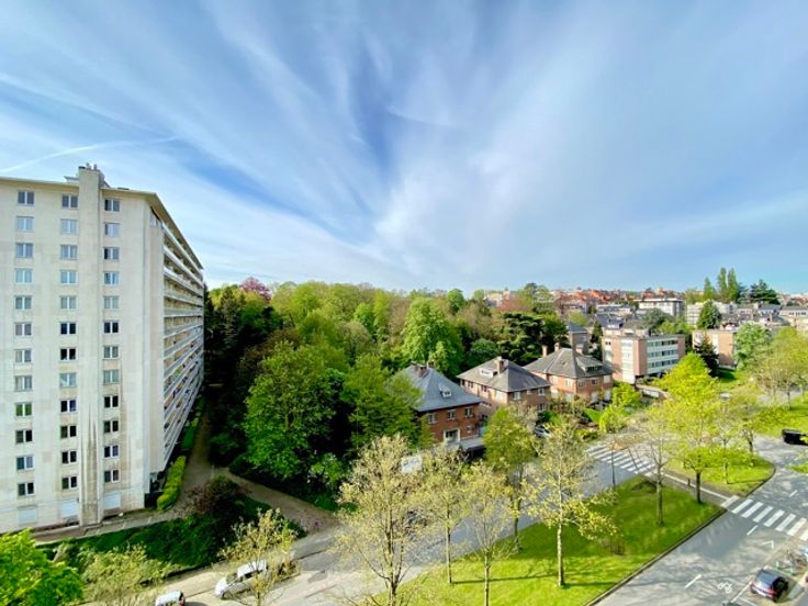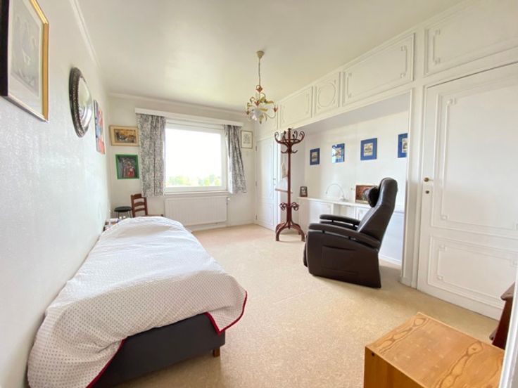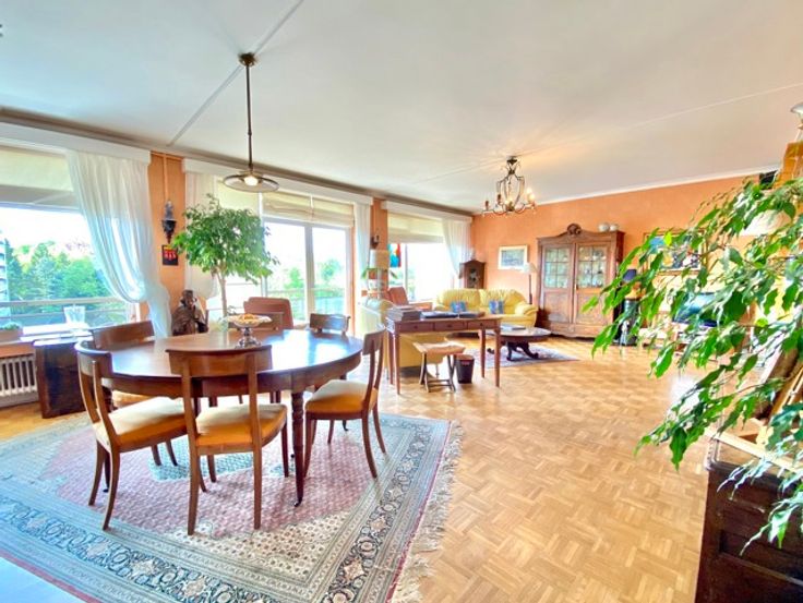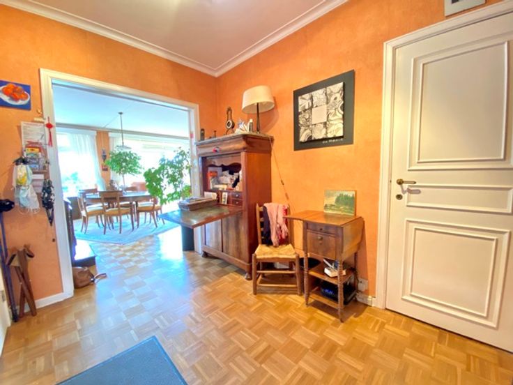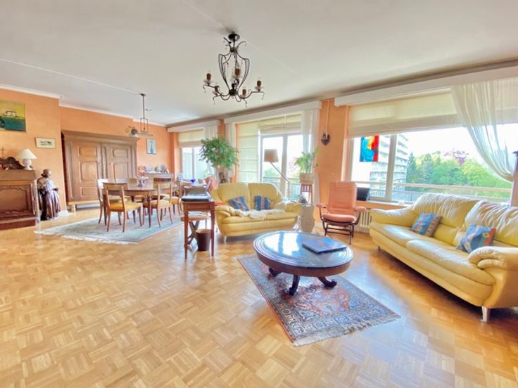 Naast het Woluwe Shopping Center en het Roodebeek metrostation, biedt deze prachtige flat ongeveer 117 m² woonoppervlakte en een heerlijk terras op het zuiden. Indeling: inkomhal met vestiaire en gastentoilet, ruime woonkamer van +/- 42 m², aparte keuken, nachthal met berging (douchekamer mogelijk), 2 slaapkamers en een badkamer. Kelder. Mogelijkheid tot aankoop van een garagebox voor €35.000. EPC: D+ (185kWh/m²/jaar)