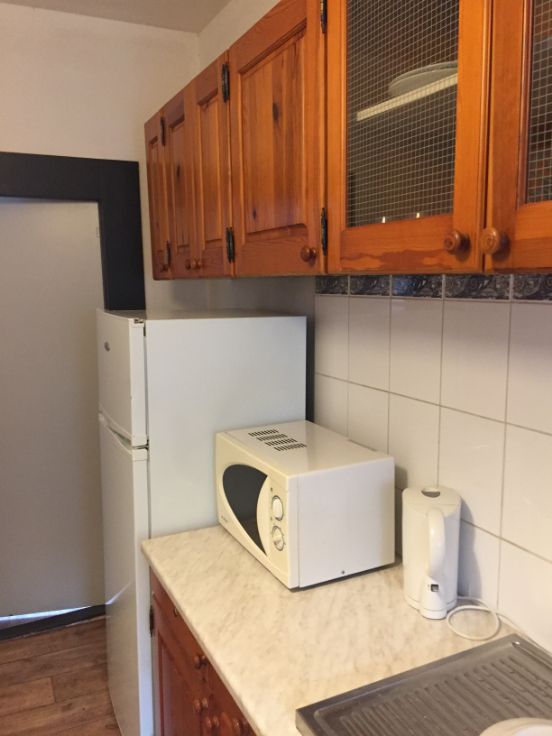 - cuisine équipée (frigo, MO combiné, plaque cuisson,meubles, vaisselle)+salle de douche avec WC et évier, en commun avec les autres occupants