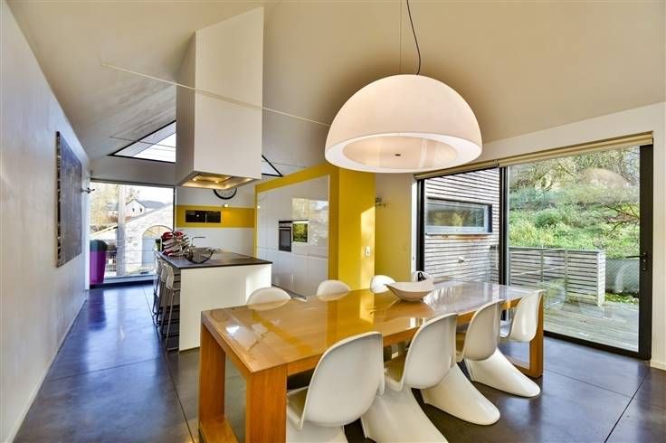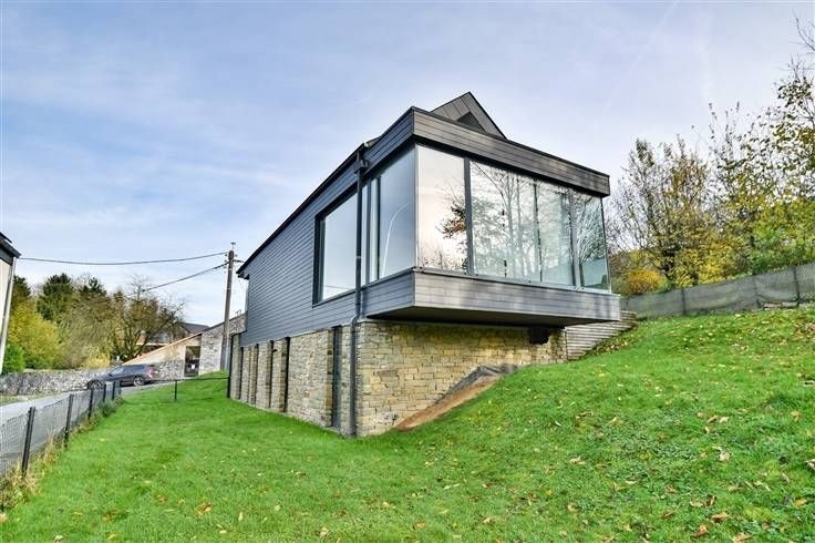 Sorry er is geen nederlandse vertaling beschikbaar. Idéalement située au calme, dans les campagnes du Condroz, magnifique habitation contemporaine implantée sur un terrain de ± 850m² qui se compose comme suit: Au-rez-de-jardin; hall de nuit, trois belles chambres de ± 11m² chacune, dressing, patio et salle-de-bains avec baignoire et douche à l'italienne. Au rez-à-rue; hall d'entrée, WC indépendant, salon très lumineux avec vue sur le jardin, belle cuisine super équipée, salle-à-manger, arrière cuisine et agréable terrasse bien orientée SUD-OUEST. Cette charmante maison vous séduira par ses espaces ouverts, sa fonctionnalité et sa modernité. Caractéristiques techniques: Chauffage sol, poêle à pellets, panneaux solaires, électricité CONFORME, excellente performance énergétique (PEB B!!), VMC double flux, citerne d'eau de pluie (5.000L) raccordée, mini-station d'épuration. Faire offre à partir de 389.000€ (sous réserve de l'acceptation des propriétaires). www.immo-bertrand.be