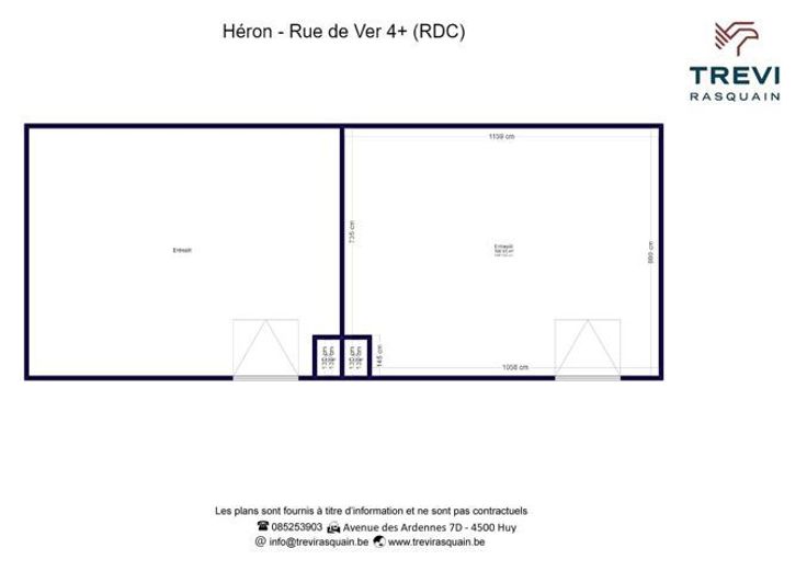 Trevi Rasquain vous propose cet ensemble immobilier situé à Lavoir (Héron), entre Namur et Liège, à moins de 5 min de l'autoroute E42. Partie grange sur plusieurs niveaux (superficie totale d'environ 350m²), 2 entrepôts de 100m² chacun, 1 entrepôt de 50m² (+ 2 niveaux qui peuvent être aménagés en bureaux, etc.) Chaque entrepôt est raccordé en eau et électricité (triphasé), avec une toilette. Possibilité de garer une dizaine de véhicules à l'extérieur. RC : 171€. Prix de vente : 425.000€, sous réserve d'acceptation des propriétaires. Informations données à titre indicatif et non contractuelles. Cette annonce ne constitue pas une offre. Plus d'informations : 085.25.39.03 - info@trevirasquain.be - www.trevirasquain.be