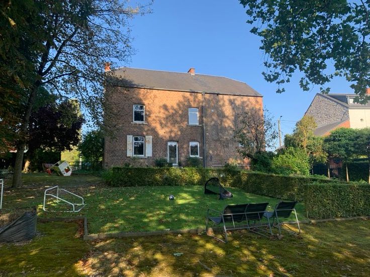 Jolie maison à louer 4 façades sise sur un terrain de 12,60 ares avec 4 chambres, grand garage et superbe jardin arboré. Charme authentique et bel espace habitable. En voici la composition : Hall d’entrée, Pièce de séjour semi ouverte sur la cuisine équipée (LV, frigo, four, plaque vitro, table incorporée), salon +/- 18M2, bureau, salle de bains avec baignoire et lavabo, 1 WC séparé, un grand garage. Au 1er étage : Hall de nuit, 4 chambres (+/- 16M2, +/- 17M2, +/- 18M2, +/- 15M2) et 1 salle de douche avec douche, lavabo et WC. Au 2ème étage : grenier. Au Sous-Sol : 2 caves. Equipements: Chauffage Central Mazout, Châssis PVC DV, Loyer: 925 € + Charges: 75 € (entretien du jardin pour tonte et haies..). PEB G N° 20160712020384 réalisé le 12-07-2016. Cons d’énergie primaire : 589 KWH/M2.AN. Garantie Locative : 2 mois sur un compte bloqué. Références Exigées. Libre le 01 janvier 2025. Gsm : 0486/259520.
