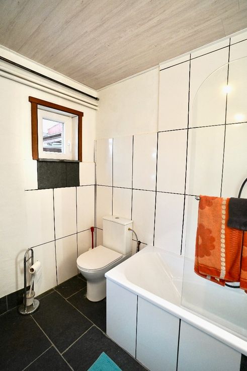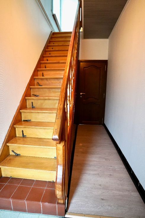 1ste verdieping: 2 mooie slaapkamers en 2de badkamer (lavabo & toilet).