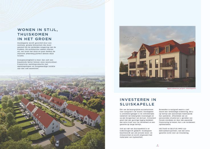 Hectaar en Belfius Immo slaan de handen in elkaar en realiseren in de Sluisstraat te Westkapelle een uniek project Sluiskapelle genaamd. Westkapelle bevindt zich in de groene gordel rond Knokke-Heist, de polders. Je vindt hier de perfecte balans tussen rustig en landelijk wonen enerzijds en de dynamiek van een bruisende, hippe badplaats aan de Noordzee anderzijds. De architectuur van deze appartementen ademt dezelfde charme als het dorp en past dankzij de stijlvolle afwerking perfect binnen deze locatie. Het project in Sluiskapelle omvat naast de woningen ook 9 ruime appartementen verdeeld over het gelijkvloers en twee bovenliggende verdiepen, met telkens één of twee slaapkamers,. Ieder appartement beschikt over een aangenaam en privaat terras. Ondergronds zijn afgesloten parkeergarages voorzien alsook een aparte fietsenstalling.  Bovendien geniet u als kopers van:  Een hoogstaande afwerking met ruimte voor persoonlijke smaak en voorkeur;  Een fossielvrije warmteproductie met lucht-water warmtepomp; Een aangelegde de tuin voor de gelijkvloerse appartementen;  U beslist zelf volgens eigens smaak en budget over de vloertegels, de binnendeuren, de keuken, de elektriciteitsvoorzieningen en het sanitair waaronder ook de badkamer. We rekenen voor deze afwerkingen op onze vaste partnerleveranciers.  Klinkt wonen in stijl en thuiskomen in het groen als muziek in de oren, aarzel dan niet en contacteer ons spoedig.    Renovatieplicht: onbekend