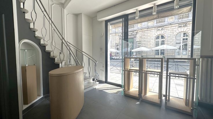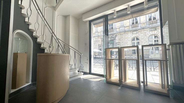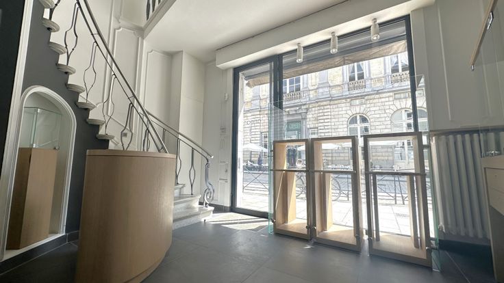 Specificaties: houten schrijnwerk met deels hoogrendementsbeglazing en deels enkel glas, gepleisterd plafond met opbouw led-armaturen en uplighters, keramische tegelvloer, kleine stockruimte, kitchenette en toilet, cv op gas, inbraakalarm