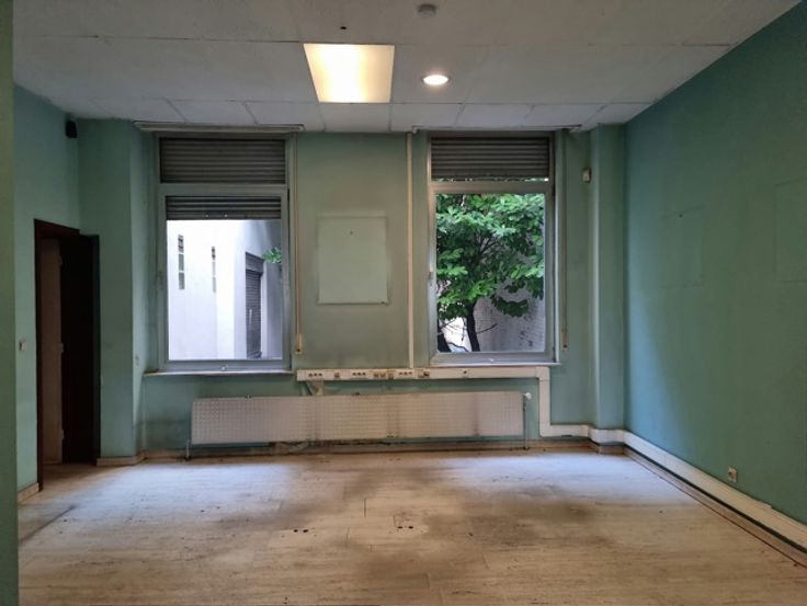 Centre Ville à proximité de la Gare du Nord, Place Rogier, Métro, transports en commun : Bureau au rez-chaussée composé de deux pièces de 26 M² soit 52 m². Façade de 8 M, ascenseur, cave, wc, chaudière au gaz. Libre d'occupation. Visites et renseignements au 0475/43.21.47.