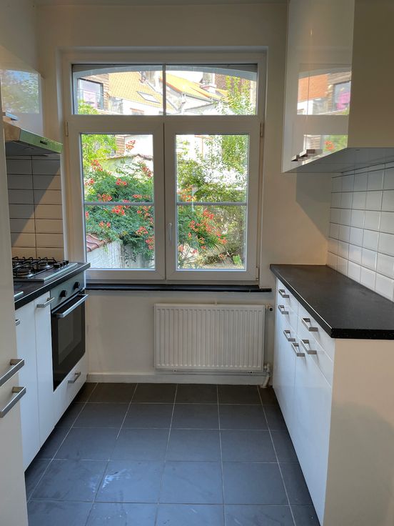 Bel appartement duplex entièrement repeint comprenant 1 jardin, 1 living, 1 cuisine équipée, 2 wc, 1 salle de bain et deux chambres. A proximité des transports en commun et des commerces (rue Vanderkindere). Disponible immédiatement. Les charges comprennent l'eau, la provision pour l'entretien annuel de la chaudière et les communs.