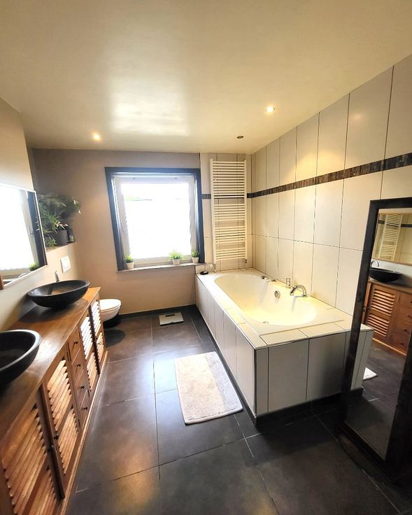 Een gewone voorgevel...maar dat goed gevoel...het zit vanbinnen... Indeling : inkomhall (schitterende tegel) 13m² - wc - woon-/eetkamer 40m² - keuken 10m² - veranda (vergund) 19m² - 3 slaapkamers (12/18/20m²) - vernieuwde badkamer (douche + lavabomeubel + bad + wc). De garage biedt plaats voor uw wagen/fietsen/motor/grasmachine/... De diepe tuin wacht geduldig op het zonneke. De keuring van de elektrische installatie zal bij akte 100% conform zijn. Instapklaar.