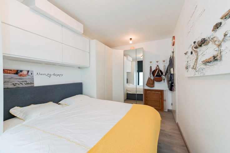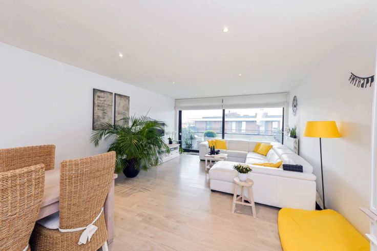 Meteen een afspraak : contacteer de eigenaar op 0497 16 11 51 Welkom in dit modern instapklaar appartement met 2 slaapkamers, ruim terras en privé staanplaats. Het is gelegen in een rustig wooncomplex aangelegd met mooie wandelpaden en omringd door heel wat groen. Het appartement maakt deel uit van een residentiële laagbouw en bevindt zich op de derde verdieping. Het is gemakkelijk bereikbaar met de lift. De inkomhal leidt je naar de ruime en zeer lichtrijke leefruimte met zithoek, eetkamer en open keuken. De keuken is compleet uitgerust met alle benodigde toestellen zoals inductiefornuis, combi oven, koelkast, diepvries en vaatwasser. Via de knusse zithoek heb je directe toegang tot het zonnige terras met een oppervlakte van 10m². Het terras is prachtig afgewerkt met een witte steen, waardoor je de volle privacy hebt. Dankzij de ZW-oriëntatie geniet je van de middag tot aan de avond van het heerlijk zonnetje. Slapen doe je hier als een roos in één van de twee achterliggende slaapkamers. De badkamer met inloopdouche, bad en dubbele wastafel maakt dit plaatje compleet. Stockage is mogelijk in de kleine berging voorzien in de gang, voor meer opslagruimte kan je terecht in de ondergrondse privéberging. Bij dit appartement hoort ook een parkeerplaats en ruime fietsenstalling. Zowel berging als staanplaats bevinden zich vlakbij de lift. Het appartement is voorzien van moderne, kwalitatieve materialen en heeft een laag energieverbruik voor comfortabel en duurzaam wonen.