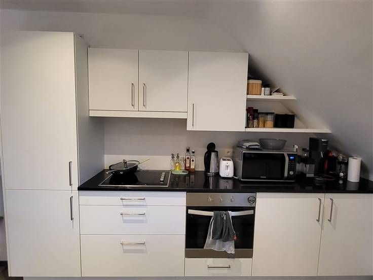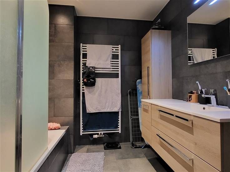RUIM, MODERN EN KWALITATIEF APPARTEMENT MET 2 SLAAPKAMERS EN GROOT WEST-GEORIËNTEERD TERRAS 24M². 2de verdieping - ligging in een moderne en kleinschalige residentie met vlotte bereikbaarheid via N16 en A12. Living met eetplaats en super-ingerichte keuken (totale opp.: 42m²) en toegang tot terras (24m²) / nachthal / wc met handwas / berging met wasplaats / 2 slaapkamers (3,5 x 3,4m; 3,4 x 2,1m) / badkamer (2,4 x 2,4m) met wastafel en ligbad . Buiten-autostaanplaats / gemeenschappelijke fietsenberging. Alle vertrekken van het appartement (op uitzondering van de slaapkamers) zijn voorzien van lichtspots. Lasten: € 50 / maand.