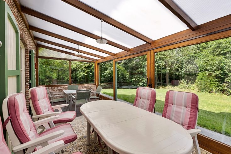 Indrukwekkende Buitenruimte Bij aankomst wordt u verwelkomd door een automatische poort die toegang biedt tot een ruime garage van 38m². De woning beschikt over een groot terras van 100m², dat in 2013 volledig is vernieuwd en voorzien van prachtige Asian Blue geschuurde tegels. Hier kunt u in alle rust genieten van zonnige dagen en gezellige avonden. Bovendien is er een vergunde veranda van 25m², perfect om het hele jaar door van uw tuin te genieten. Hoogwaardige Afwerking Binnenin de woning treft u een afwerking van hoog niveau aan, uitgevoerd met klassevolle materialen. Alle vensterszijn in 2013 vernieuwd en voorzien van superisolerend glas met een U-waarde van 1.1, wat bijdraagt aan een aangenaam binnenklimaat en lagere energiekosten. De windluiken zijn van binnenuit te bedienen. Efficiënte Energievoorziening De woning is uitgerust met een moderne mazoutbrander van het merk Oertli, waardoor u verzekerd bent van een efficiënte warmtevoorziening. In de sfeervolle leefruimte vindt u een witstenen open haard die een gezellige ambiance creëert. Duurzaamheid en Comfort Met twee regenputten van elk 10.000 liter en een aansluiting op de riolering aan de straatzijde, biedt deze woning praktische oplossingen voor waterbeheer en duurzaamheid. Deze woning heeft veel potentieel en kan door zijn ligging en met zijn 6 sl