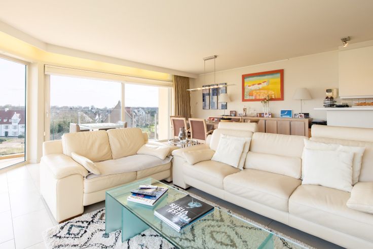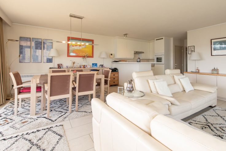 Prachtig ingericht hoek appartement (110m²) met 2 slaapkamers vlakbij zee en met zicht op het Esplanadeplein. Het appartement bevindt zich op de 4de verdieping van de standingvolle residentie Topaze (bj 2000) en omvat: inkomhal met ingebouwde vestiaire, ruime en zonnige woonkamer met open keuken en aangenaam zongericht terras, 2 slaapkamers met maatmeubelen, maar mits éénvoudige ingreep om te vormen tot 3 slaapkamers zoals origineel voorzien, 1 badkamer met ligbad, lavabo en wc, 1 badkamer met douche en lavabo, aparte WC en berging met wasmachine. Bijhorende kelder en mogelijkheid tot aankoop van een enkele of dubbele garagebox en/of parkeerplaats in de ondergrondse. Gebouw met basis vloerverwarming! Elektrische installatie conform! Recent uitgevoerde gevelrenovatie! Overname meubels bespreekbaar. EPC C-label (227)