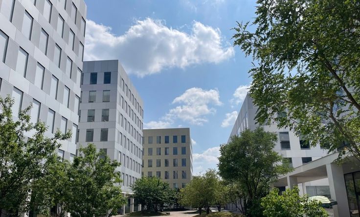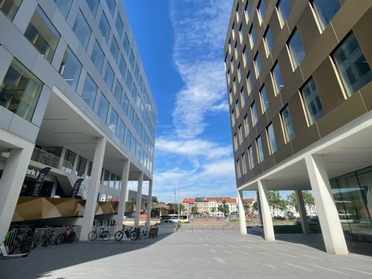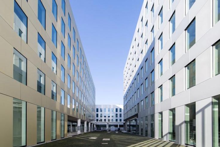 Gebouwen met 8 niveaus en totale oppervlakte van ± 8.500 m²/gebouw.