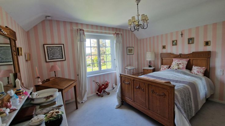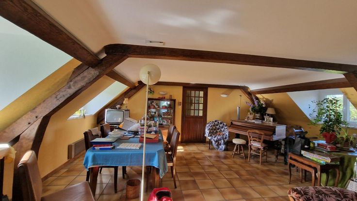 Au niveau supérieur, il y a une mezzanine très spacieuse qui propose diverses options salle de jeux, de cinéma ?, avec trois chambres, deux toilettes, une salle de bain et grenier.