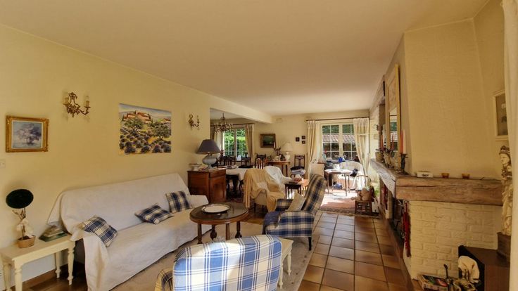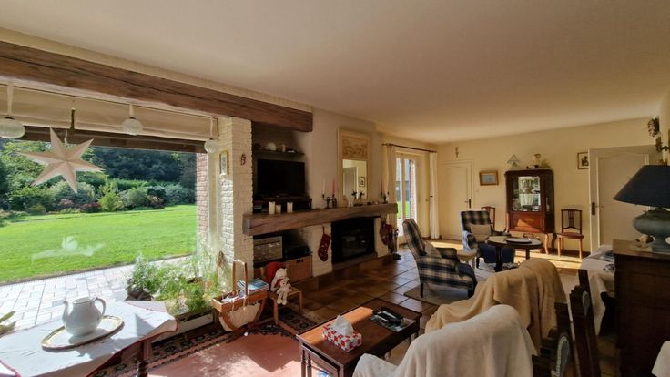 Au rez-de-chaussée, hall d'entrée, un séjour/salon de belle taille avec insert et baies vitrées donnant sur un magnifique espace de verdure.