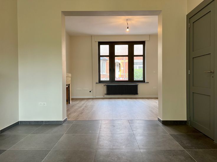 Idéalement située à quelques pas du centre de Jambes et donc de toutes les facilités (commerces, pharmacies, transports en commun, cinéma, parc...), cette maison de ville récemment rénovée avec goût est composée, au rez-de-chaussée, d'un hall d'entrée, d'un lumineux séjour donnant accès à une cuisine entièrement équipée, une véranda et un WC. A l'étage, un hall de nuit permettant l'accès à deux belles chambres, une salle de douche et un second WC. De grandes caves, un grenier isolé, un jardin et deux emplacements de parking complètent la description. Quelques caractéristiques : chauffage central au gaz de ville (Ferroli), électricité conforme, PEB C, double vitrage, volets, première occupation depuis la rénovation...Renseignements et visites au 0473/822.365.