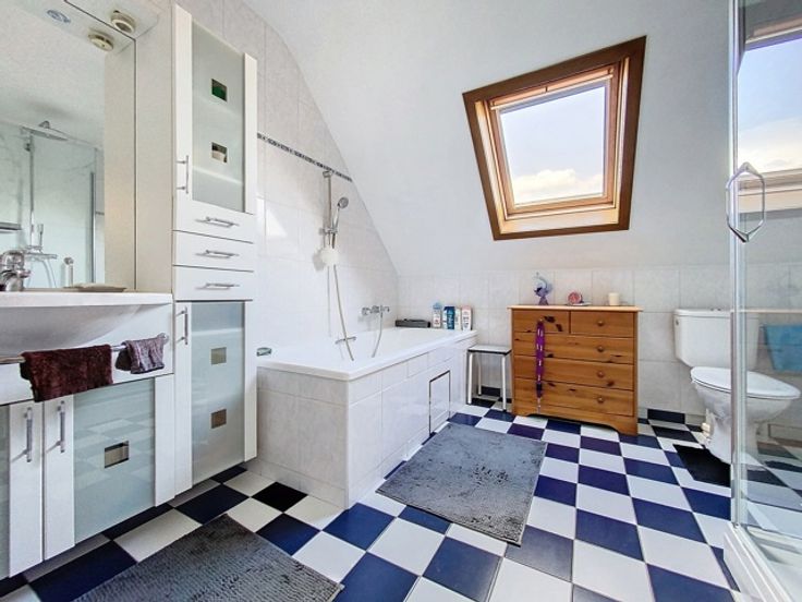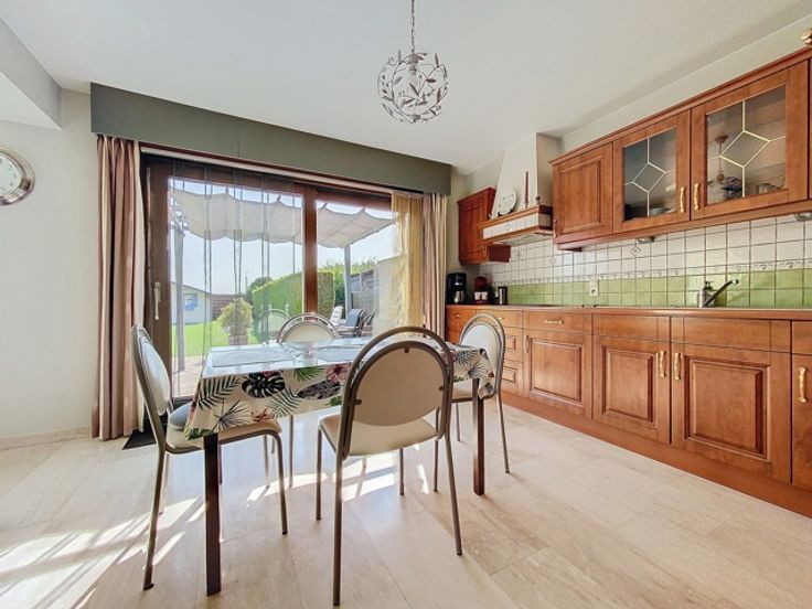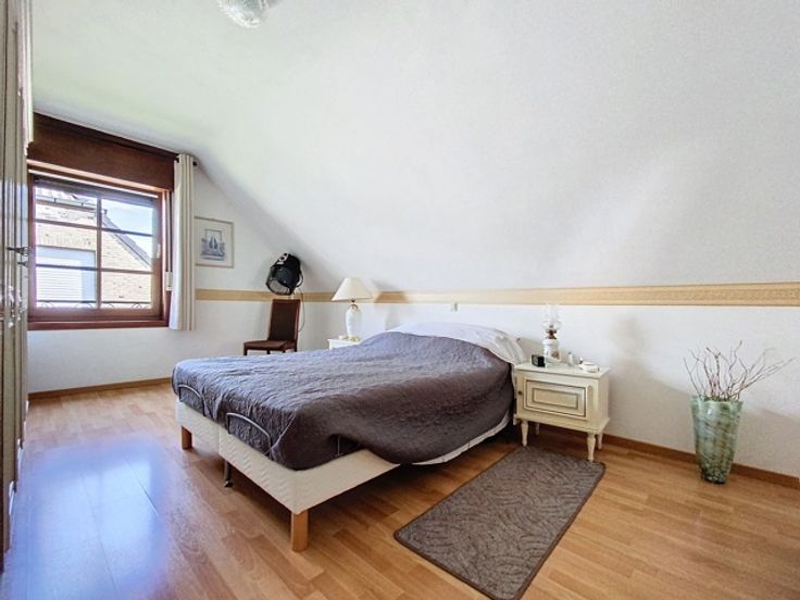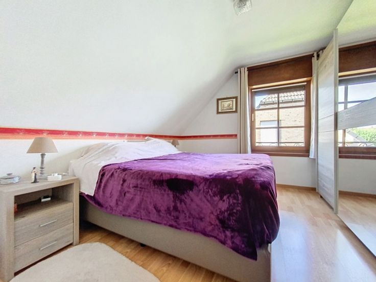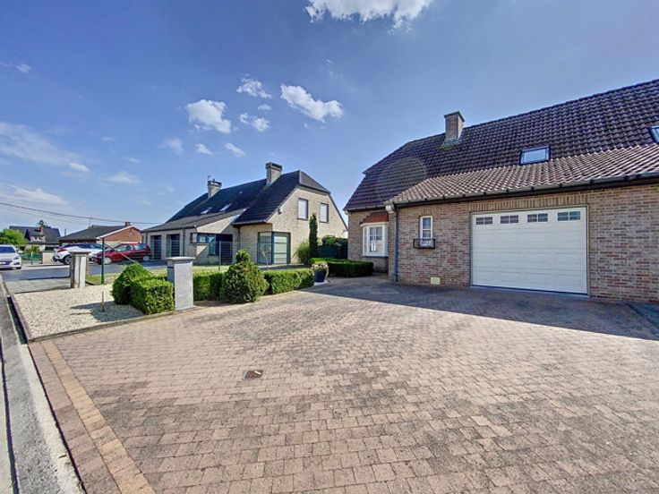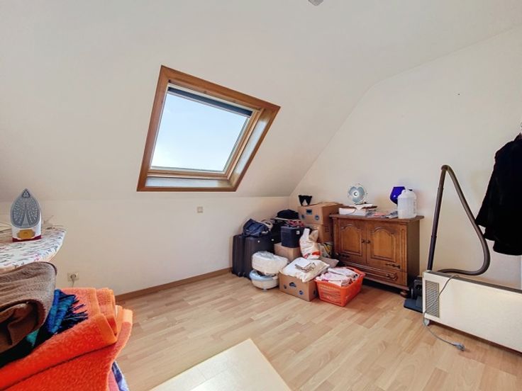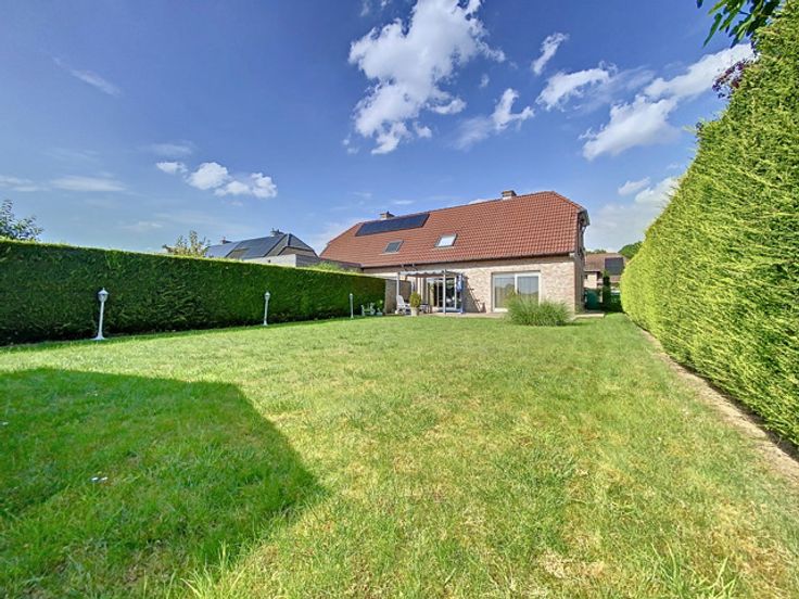 Cette maison trois façades, construite en 2001, offre un cadre de vie confortable et fonctionnel avec des équipements modernes et bien agencés. Au rez-de-chaussée, vous serez accueilli par un hall d'entrée accueillant qui mène à un WC carrelé avec lave-mains. Le living lumineux est parfait pour se détendre en famille ou entre amis, suivi d’une cuisine comprenant une taque vitrocéramique, un four, un frigo, une hotte, un évier double et des meubles de rangement. Le rez-de-chaussée comprend également un garage avec une porte sectionnelle motorisée et un parking, offrant un espace sécurisé pour un véhicule. Au sous-sol, un cellier offre un espace de stockage supplémentaire pour vos provisions et équipements divers. À l’étage, un hall dessert les différentes pièces, dont une salle de bains équipée d'un lavabo simple, d'une baignoire, d'une douche, d'un WC et de meubles ainsi que trois chambres de 11 m², 12 m² et 17 m². Un grenier est accessible au deuxième étage, offrant un espace de rangement supplémentaire. L'extérieur de la maison dispose d'un jardin clôturé et arboré, un espace vert agréable pour profiter des beaux jours, ainsi qu'une terrasse en pavés avec un chalet, idéale pour les repas en plein air et les moments de détente. La maison est équipée d'un chauffage central au gaz, de châssis en bois double vitrage, de persiennes électriques aux baies vitrées et à l'arrière du rez-de-chaussée, manuelles à l'étage. Une citerne de 5000 L permet de réaliser des économies d'e