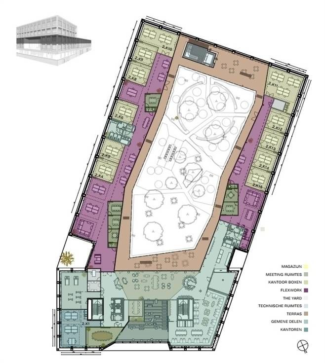 Business center “In The Yard”, een veelzijdige ontmoetingsplek met als focus het welzijn van de gebruikers. In The Yard zet maximaal in op het welzijn van de medewerkers door het nastreven van de WELL-standard. Dit resulteert zich onder andere in een binnenklimaat van hoge kwaliteit, een goede akoestiek, voldoende daglicht, maar ook worden er grenzen verlegd als het gaat om beweging, voeding, vitaliteit enz. Gebruikers worden members van een community. Om maximaal in te zetten op het creëren van een community worden er events georganiseerd, alsook is er plaats voor ontspanning op de site. Er is naast een padelveld ook een basketbalveld en ruimte voor petanque voorzien. In het business center bevindt er zich een event ruimte, boardroom voor 16 personen een bar en een restaurant. De kantoren worden full-serviced aangeboden. Dit zorgt ervoor dat huurders niet voor verrassingen komen te staan op vlak van kosten. Momenteel zijn er ruimtes beschikbaar van 31m² t.e.m. 624m². Het gebouw is gelegen langsheen de E40 in Drongen. Vlot bereikbaar en ruime parkeergelegenheid met ratio 1 pp/ 15m² (laadfaciliteit aanwezig).