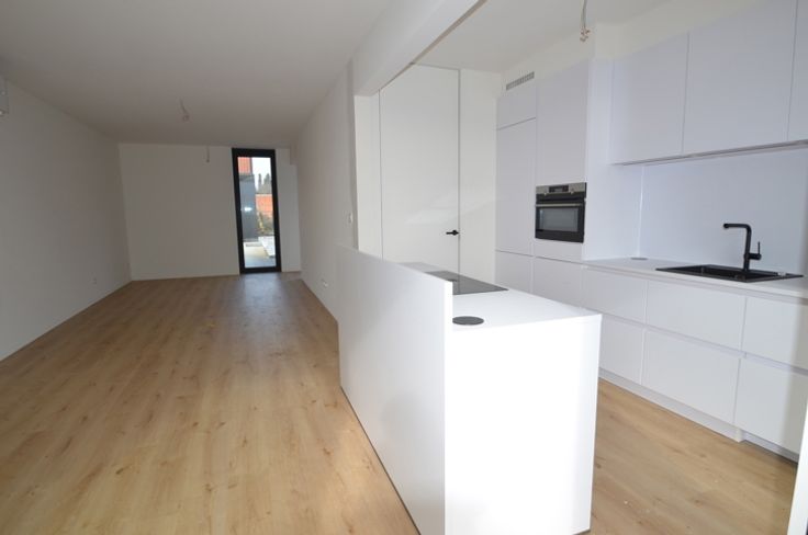 LOKEREN: op wandelafstand van de Markt en gelegen in het groen vlakbij park: heel recente, strakke woning (2023) met 3 slaapkamers, leefruimte, ingerichte keuken, berging, badkamer - tuinterras - ondergrondse parkeerplaats in gebouw vlakbij - leuke sfeer in een groepje van 10 woningen