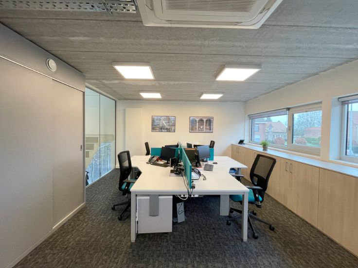Op het gelijkvloers bevinden zich 3 afzonderlijke bureauruimtes waarvan 1 momenteel ingericht als vergaderzaal.