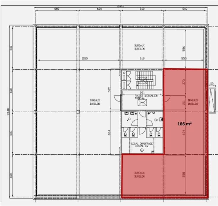 166m² zijn momenteel op de 1ste verdieping beschikbaar, alsook ong. 250m² op het gelijkvloers. Dit oppervlakte heeft ook een privative sectionele poort.