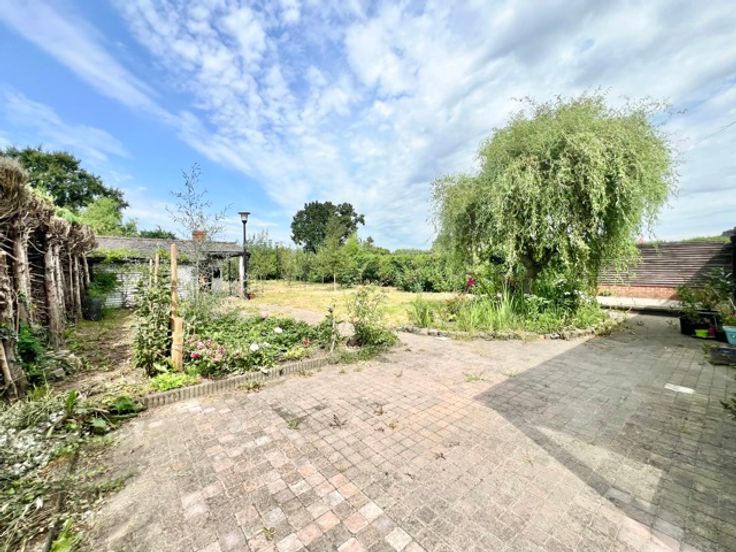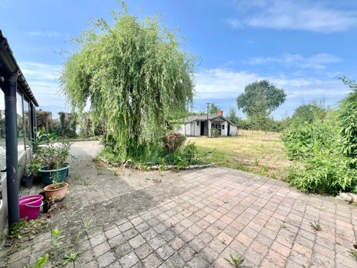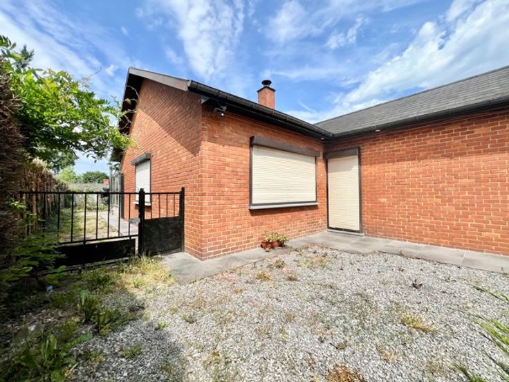 Te koop Gelijkvloerse woning met tuin, garage en zij-ingang.