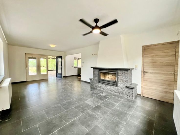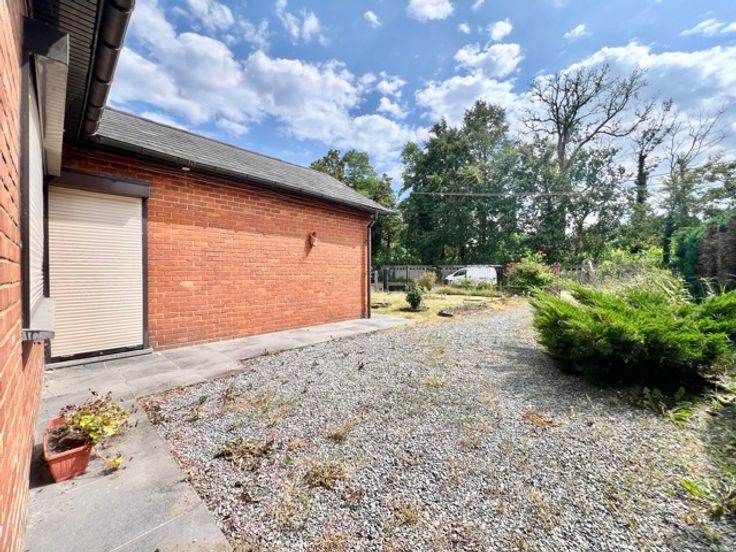 In een rustige, lommerrijke straat biedt A.D.S. Immo je deze charmante gelijkvloerse woning aan, gelegen op een terrein van 9 hectaren met een aangename en rustige woonomgeving. Gelijkvloers: verwelkomende daghal, apart toilet, doucheruimte, ingerichte keuken die uitgeeft op de eetkamer en de woonkamer met prachtig uitzicht op de veranda en de achtertuin die de ruimte overspoelen met natuurlijk licht en 2 slaapkamers. Eerste verdieping: zichtbare mezzanine met een aangrenzende kamer die gebruikt kan worden als opslagruimte, speelkamer of studeerkamer. Extra kenmerken: - Condensatieketel voor efficiënte, zuinige verwarming - Dubbele beglazing voor verbeterd thermisch en akoestisch comfort - Elektrische rolluiken voor alle ramen - Volledig vernieuwd elektrisch systeem, garandeert veiligheid en conformiteit - Prachtige houtkachel in de woonkamer - Bebost terrein met fruitbomen, bloemen, moestuin en een bijgebouw (schuur/tuinhuisje) - Zijpoort die toegang geeft tot de garage, die plaats biedt aan meerdere voertuigen - Centrale verwarming op gas Woonomgeving : - Absolute rust met geen buren tegenover of links van de villa - Dichtbij alle voorzieningen en winkels Voorwaarden : - Verlaagde registratierechten beschikbaar - > kadastraal inkomen (RC): €686 Mis deze unieke kans niet! Neem voor meer informatie contact met ons op via 0499 66 66 11 of via info@adsimmo.be