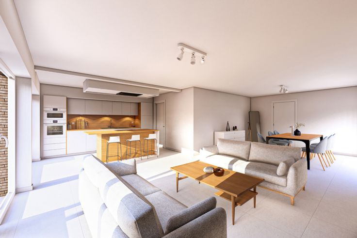 Caractéristiques techniques : châssis PVC double-vitrage, porte d’entrée en PVC, porte de garage motorisée, tablettes de fenêtre en marbre blanc ou en pierre bleue adoucie avec contre bord, escalier en hêtre, chauffage central au gaz naturel, chaudière avec boiler séparé, radiateurs, thermostat à horloge, VMC double flux, carrelage dans la pièce de vie et dans la salle de bain avec plinthes assorties, faïences autour de la baignoire ainsi que dans la douche avec plinthes assorties, parquet dans les chambres, carrelage anti-graisse dans le garage, clôtures mitoyennes, jardin non engazonné, tout à l'égout, puits de contrôle, siphons à cloche, citerne de récupération d’eau de pluie de 10000 L avec trop plein (pompe comprise) , 6 panneaux solaires, accès au garage en pavés autobloquants