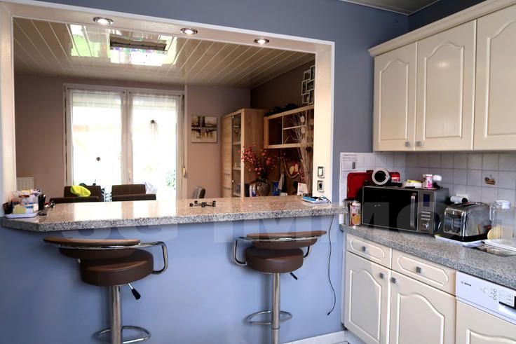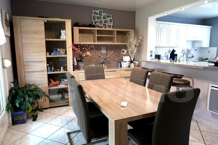 3 GIMMO PAYS HAUT VOUS PROPOSE EN EXCLUSIVITE CETTE MAISON INDIVIDUELLE A MORFONTAINE 3 CHAMBRES, 73 M2 HABITABLES (HORS RANGEMENT ET GARAGE), TERRASSE COUVERTE, SUR UNE BELLE PARCELLE DE 9.70 ARES : au rez-de-chaussée : allée de garage, garage 1 véhicule, cellier, buanderie et pièce de rangement. Accès extérieur vers le terrain. Au premier étage : hall d'entrée équipé d'un poêle à pellets, pièce de vie semi-ouverte avec la cuisine équipée et le séjour pour env. 32 m². Accès direct à la terrasse couverte (env 60 m², dalle suffisante pour réaliser une extension / véranda) et au terrain depuis la salle à manger. Toilettes séparées. Au second étage : pallier, salle d'eau (doucha cabine, meuble 1 vasque et second toilettes), 3 chambres : 9, 10 et 12,5 m². Combles isolés, accessible via trappe. Maison de construction traditionnelle (1953), rénovée en plusieurs étapes : fermetures DV PVC intégral, remplacement de la couverture et isolation de la toiture (multicouche '17' + laine de verre et laine de roche soufflée dans les combles) en 2104, couverture de la terrasse, isolation intérieure des murs. Le chauffage du RDC est assuré par une pompe à chaleur installée en 2019, l'étage par des convecteurs électriques. Installation électrique avec option heures creuses / heures pleines. Assainissement conforme. Fibre internet reliée. Les extérieurs : les abords (pavage, escaliers) refaits. pelouse sur la grande majorité du terrain, belle terrasse, abri de jardin. Située dans une zone à