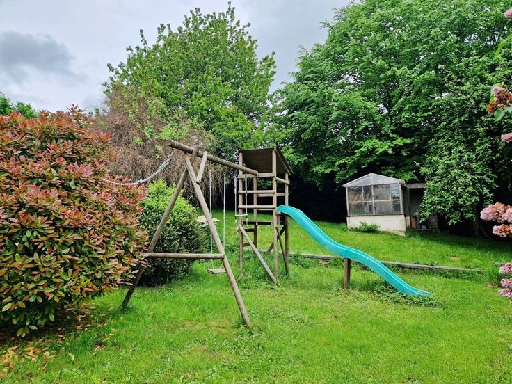 Cette maison se complète de 2 garages, de vastes greniers offrant d’intéressants volumes de rangement, une terrasse ainsi qu’un agréable jardin arboré avec serre, poulaillers et air de jeux pour apprécier de précieux moments de détente en contact direct avec la nature.