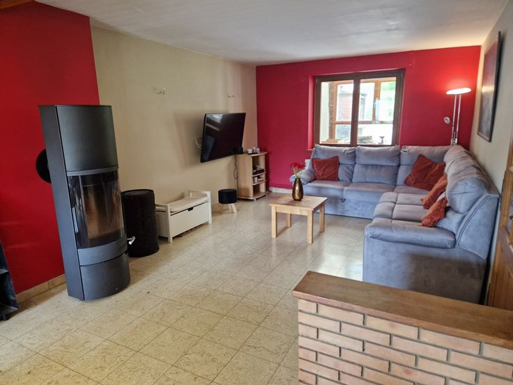 Elle est équipée de châssis double vitrage, de volets électriques, d’une chaudière au mazout, d’une chaudière à bois et de panneaux photovoltaïques d’une puissance de 6,2 kwc.