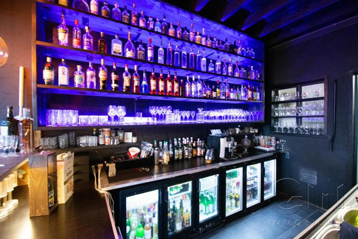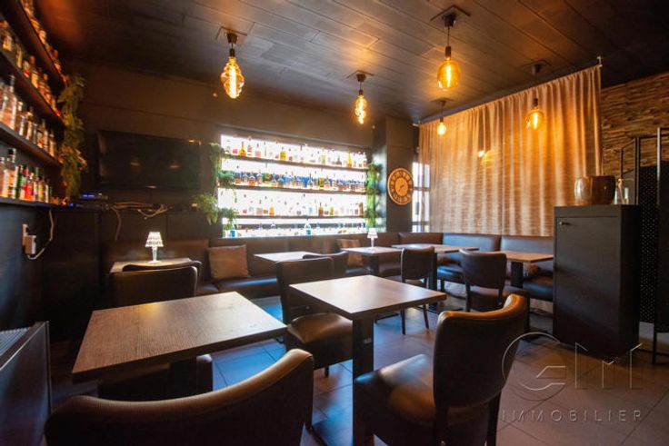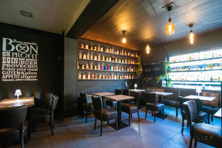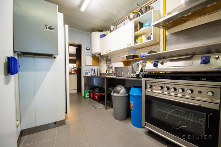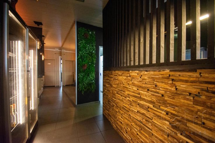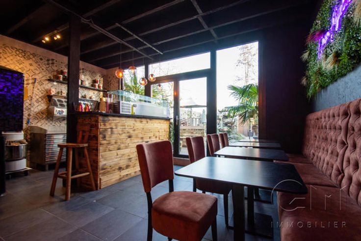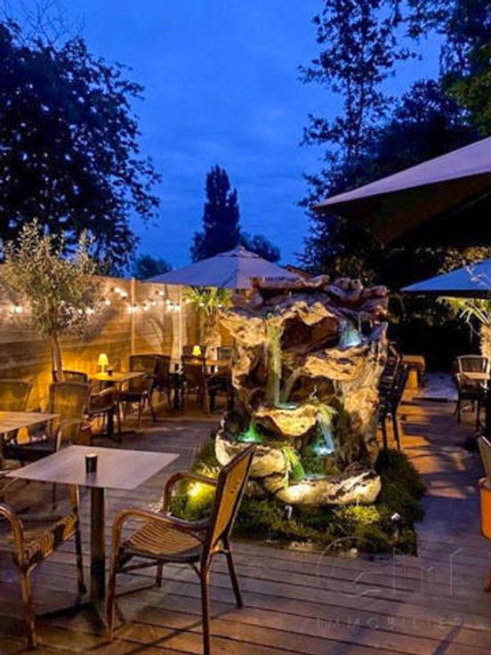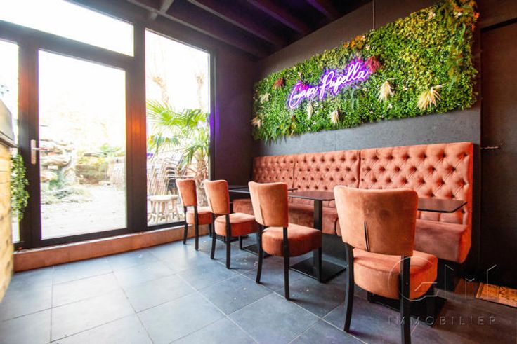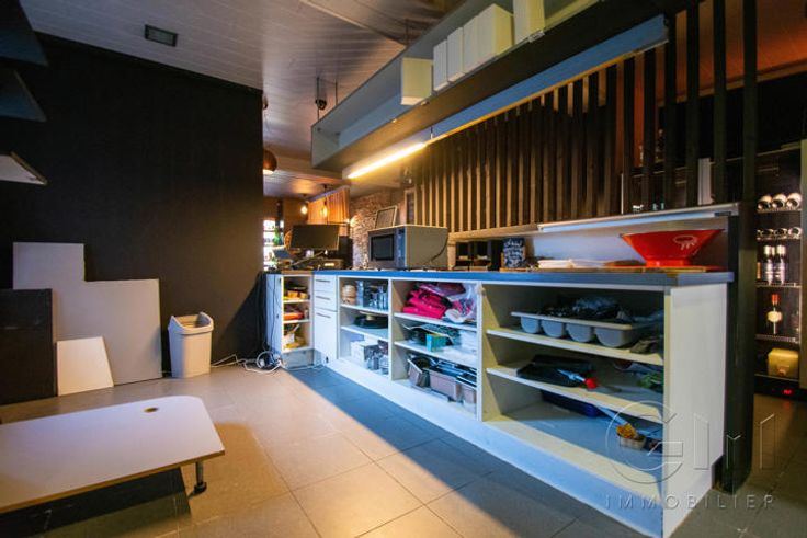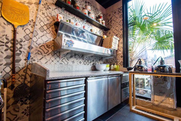 * Au rez-de-chaussée : Très bel espace restaurant (2 salles) avec terrasse disposant déjà de tout le mobilier nécessaire à l'ouverture (four à pizza de qualité, chambre froide, congélateur, bar, caisse enregistreuse, ...)